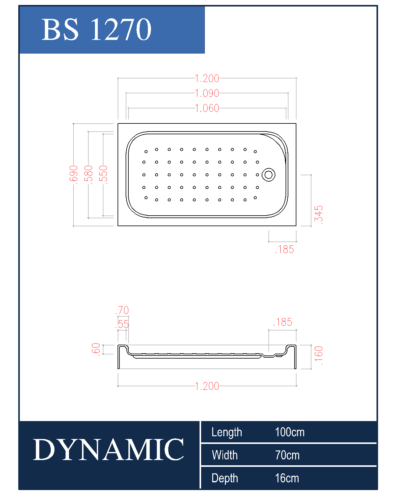 SHOWER TRAY MODEL BS1270 WITH 120CM LONG, 70CM WIDTH, 16CM DEPTH THE SHOWER TRAYS COLLECTION OF OURS IS SUSTAINABLE , DURABLE AND FRESH DESIGNED. THESE SHOWER’S PANEL ARE MADE WITH SAME ACRYLIC SHEET OF THE SHOWER SO YOU COULD ENJOY FIXING IT ON TILES AT EASE. FOOT STEP DRIANGE COULD INSTALLED.
